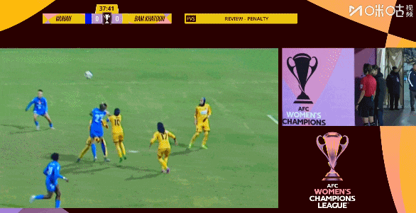 第38分钟,武汉女足投诉对手防守球员禁区内手球,主裁借助FVS回看录像后并未判罚点球。